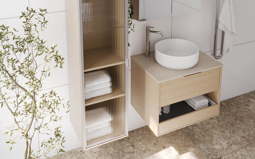 Oppbevar smart for mindre rot - Bruk veggmonterte hyller, kurver eller skap med speildører for å holde badet ryddig og luftig.