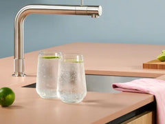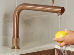 Med en Quooker får du kokende vann i springen på et blunk! Med den unike PRO3 beholderen plassert i kjøkkenskapet, kan du tappe opptil 3 liter 100 ℃ kokende vann rett fra kjøkkenkranen. Og skulle du tømme tanken, tar det kun 10 minutter før den er klar til bruk.
