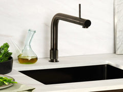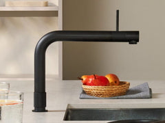 Flex er den nyeste oppfinnelsen fra Quooker. En alt-i-ett kran med varmt vann, kaldt vann og kokende vann - samt en praktisk fleksibel uttrekksslange. Takket være stoppefunksjonen for kokende vann, kan ikke Flex levere kokende vann når slangen er i bruk. Fås i Round design med høy, buet tut.