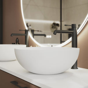 - Høyt servantarmatur: Servantbatteri beregnet for bolleservanter og montering på benkeplate.