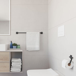 En svart håndklestang er ideell for å henge opp håndklær og tilføre en luksuriøs følelse til badet ditt. Hos Bad.no finner du svart håndklestang i alle størrelser, enten du trenger enkel og elegant eller plass til flere håndklær. En håndklestang i svart farge er enkelt å matche med andre baderomsartikler og kan bidra til å oppdatere innredningen. Velg mellom børstet overflate eller matt pulverlakk for et stilrent uttrykk. Finn din favoritt håndklestang i svart på Bad.no.