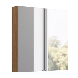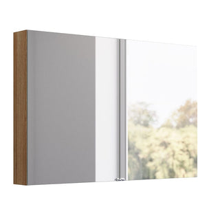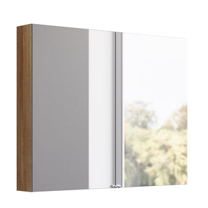 Vanntett termoplast. To dører, softclose. To flyttbare glasshyller. Speil på innside og utside av speildører. Kompletteres til produktene i Aqua Prosjekt-serien.