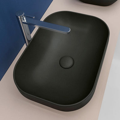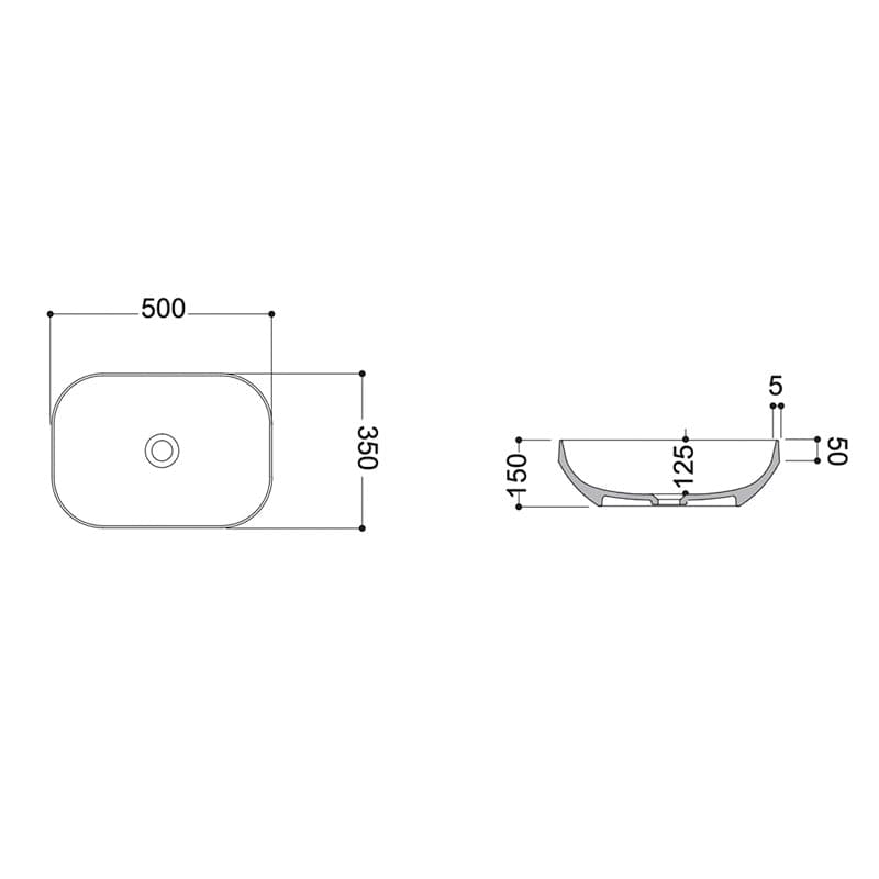 Decus er en slank, rektangulær bolleservant som står stødig på benkeplaten og gir badet et ryddig, moderne uttrykk. Med 50×35 cm footprint utnytter den plassen effektivt, mens høyde på ca. 15 cm og innvendig dybde på ca. 12,5 cm gir god sprutkontroll ved daglig bruk.