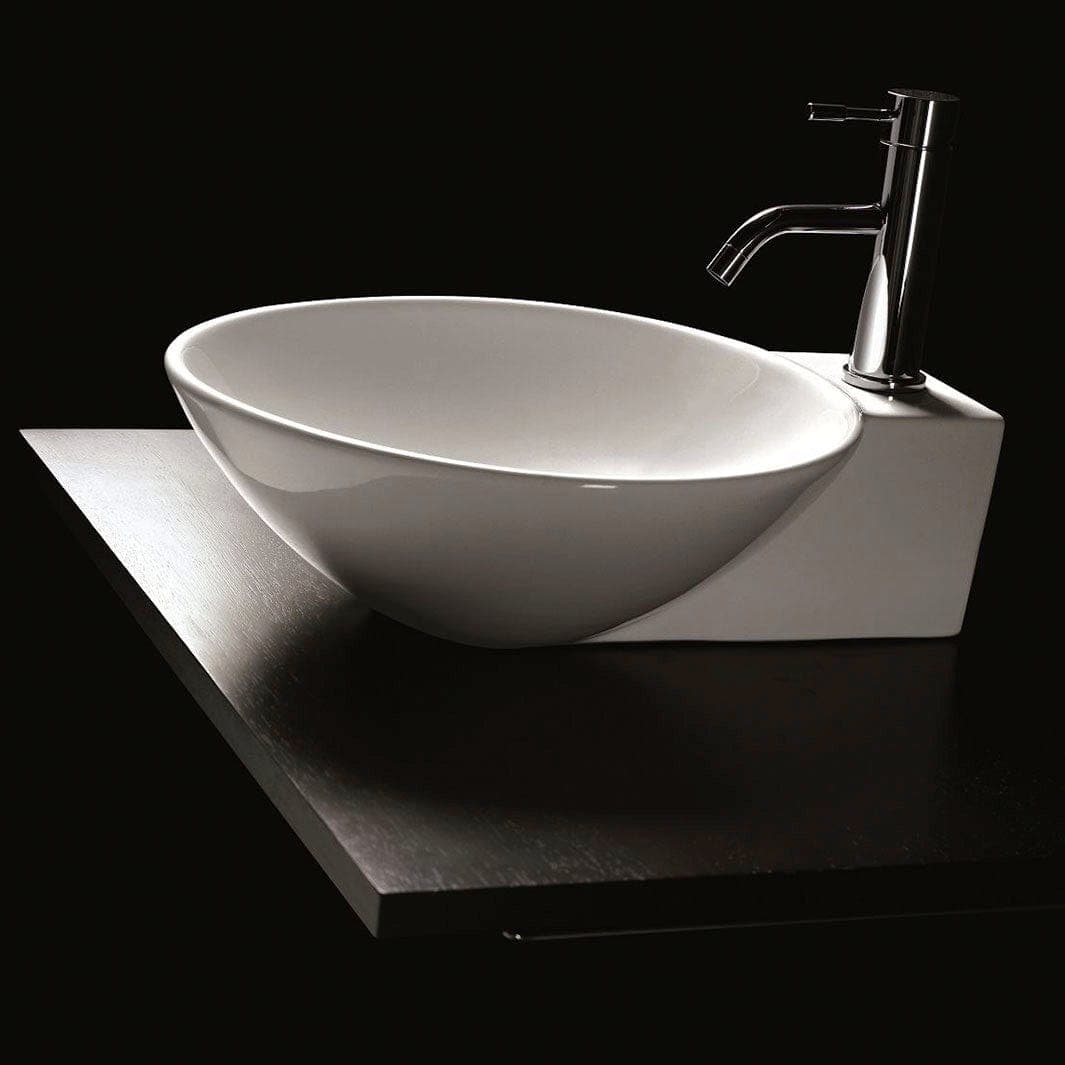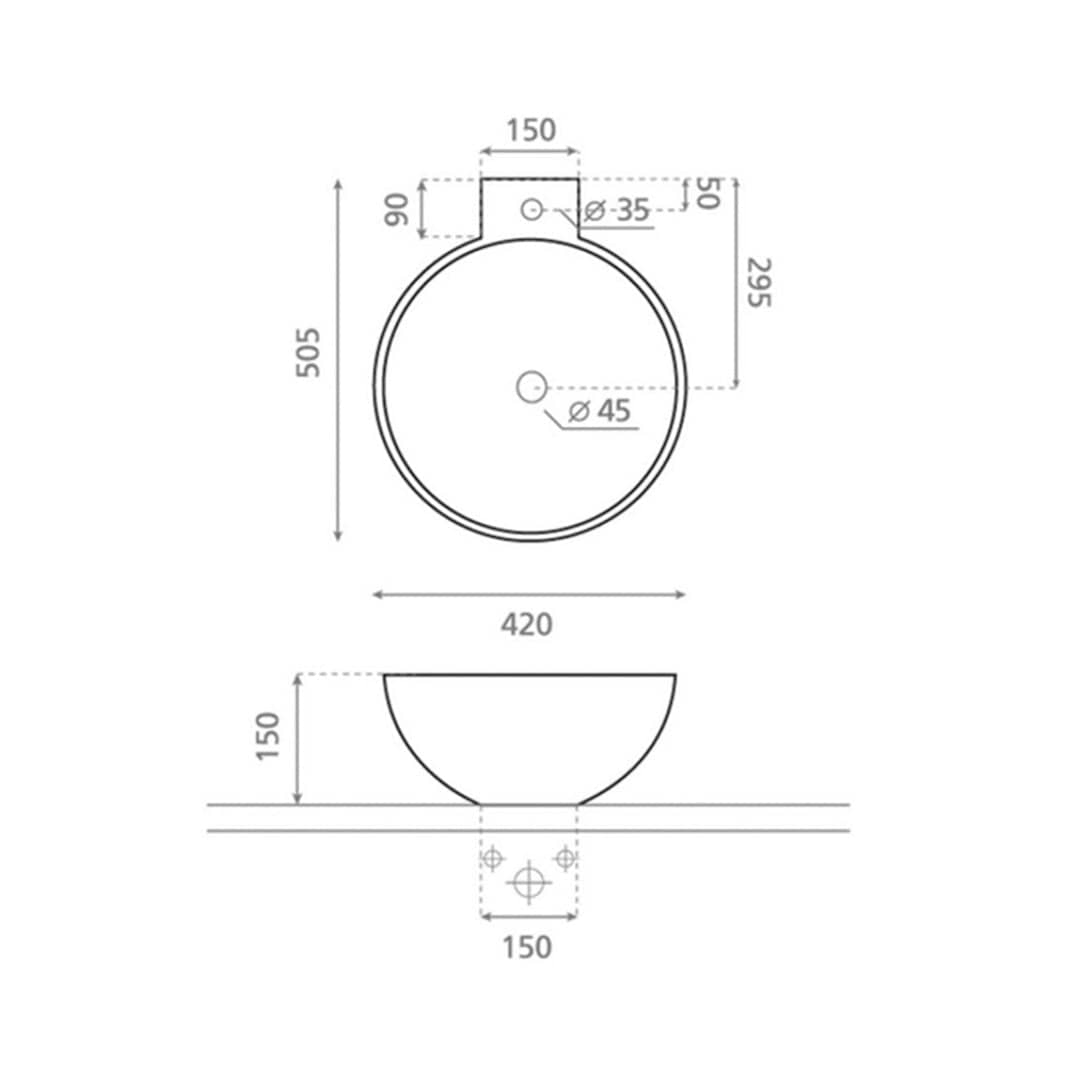 Praktisk rund porselensservant for montering på plate. Har kranhull for servantkran.