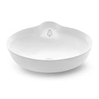 Porselensservant med overløp. For montering på vegg eller plate. Tynt porselen med pene avrundede hjørner.
