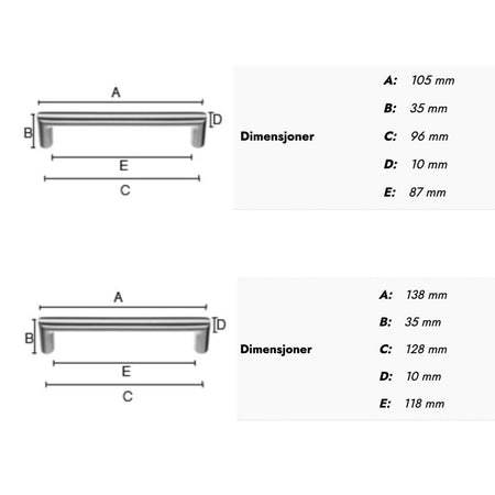 Produkt Id 8325489656007 Merke Beslagsboden Art.nr. Farge Lengde (cc) SM-B621 Børstet stål 96mm SM-B6211 Børstet stål 128mm