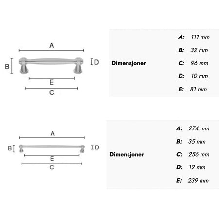 Produkt Id 8326780453063 Merke Beslagsboden Art.nr. Farge Lengde (cc) SM-BA630 Antikk messing 96mm SM-BA6303 Antikk messing 256mm SM-BB630 Svart 96mm SM-BB6303 Svart 256mm SM-BN630 Børstet nikkel 96mm SM-BN6303 Børstet nikkel 256mm SM-BG630 Fortinnet 96mm SM-BG6303 Fortinnet 256mm Vis mer