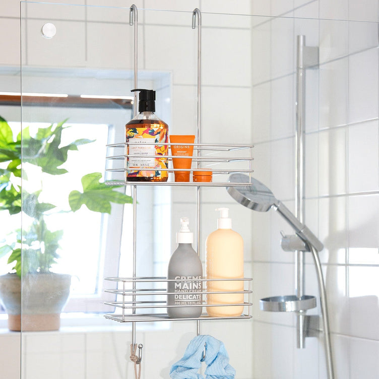 Dusjkurv i 2 plan. Krom rustfritt stål. Rak opphengskrok. Kurv 120 x 250 mm. Kurvens høyde 71,5 mm. Total høyde 660 mm.
