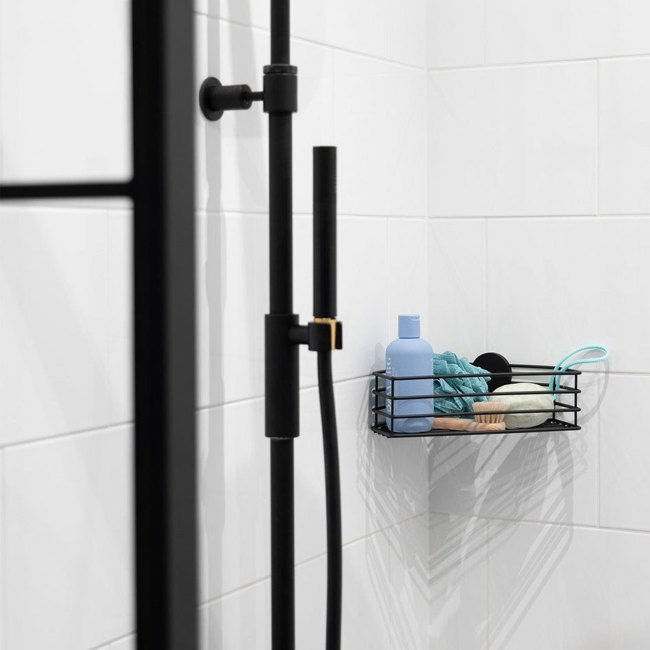 Svært monteringsvennlig og stilren dusjkurv fra Beslagsboden. Hjørnemontering.