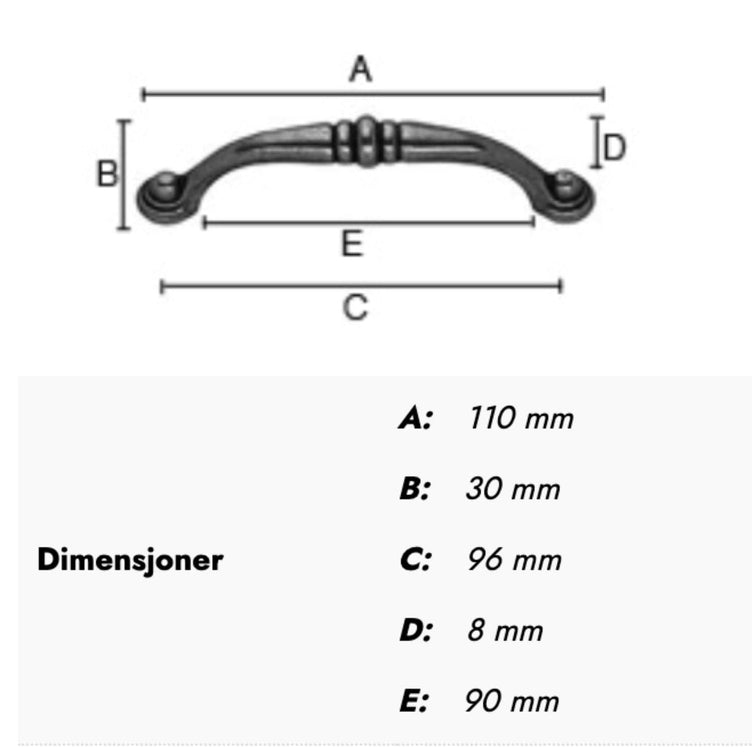 Produkt Id 8324598857927 Merke Beslagsboden Art.nr. Farge SM-B545 Børstet nikkel SM-B542 Antikk messing SM-B543 Fortinnet SM-BB542 Svart Vis mer
