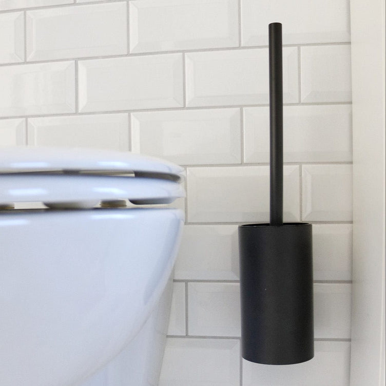 Beslagsboden WC-børste, veggmontering. Finnes i børstet rustfritt stål (B1035), svart matt (BB1035), krom (BK1035) Selvklebende. Høyde 370 mm.