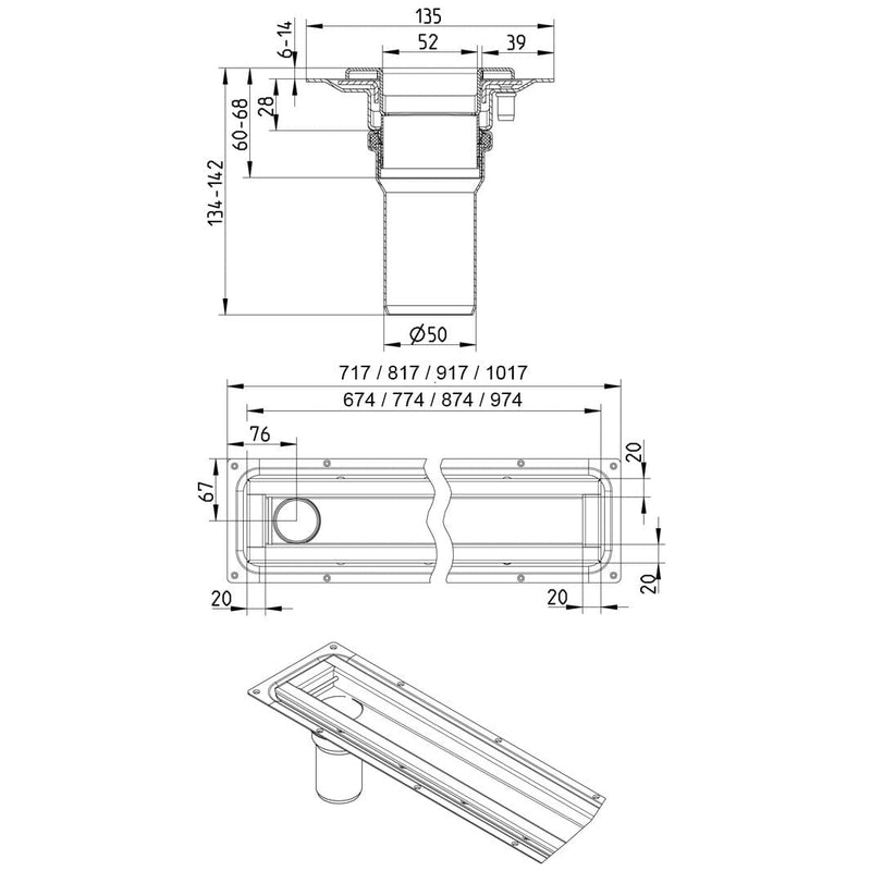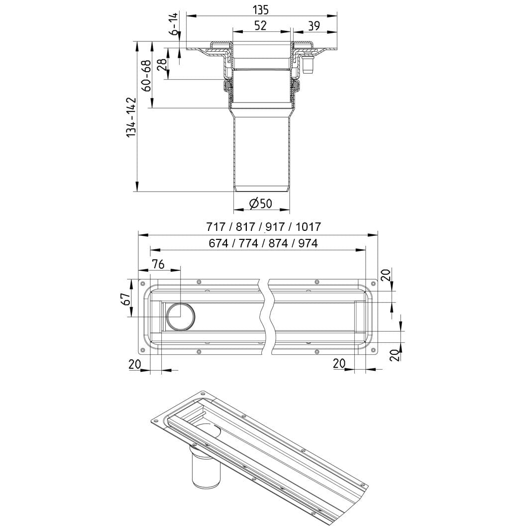 For flisegulv med fast toppmembran. Rist og vannlås følger ikke med