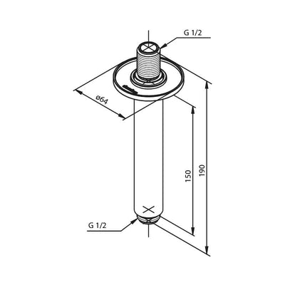 Dusjarm monteres sammen med Damixa Silhouet Concealed dusjsett for innbygging. Takrøret bestilles som tillegg til komplett sett dersom du ønsker taksilen fra taket og ikke ut fra vegg. Leveres i flere overflater / farger.