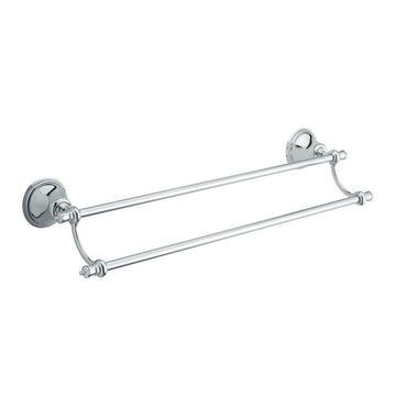 Dobbel håndklestang. Total lengde på stang 552 mm. Avstand feste for skruehull 489 mm.