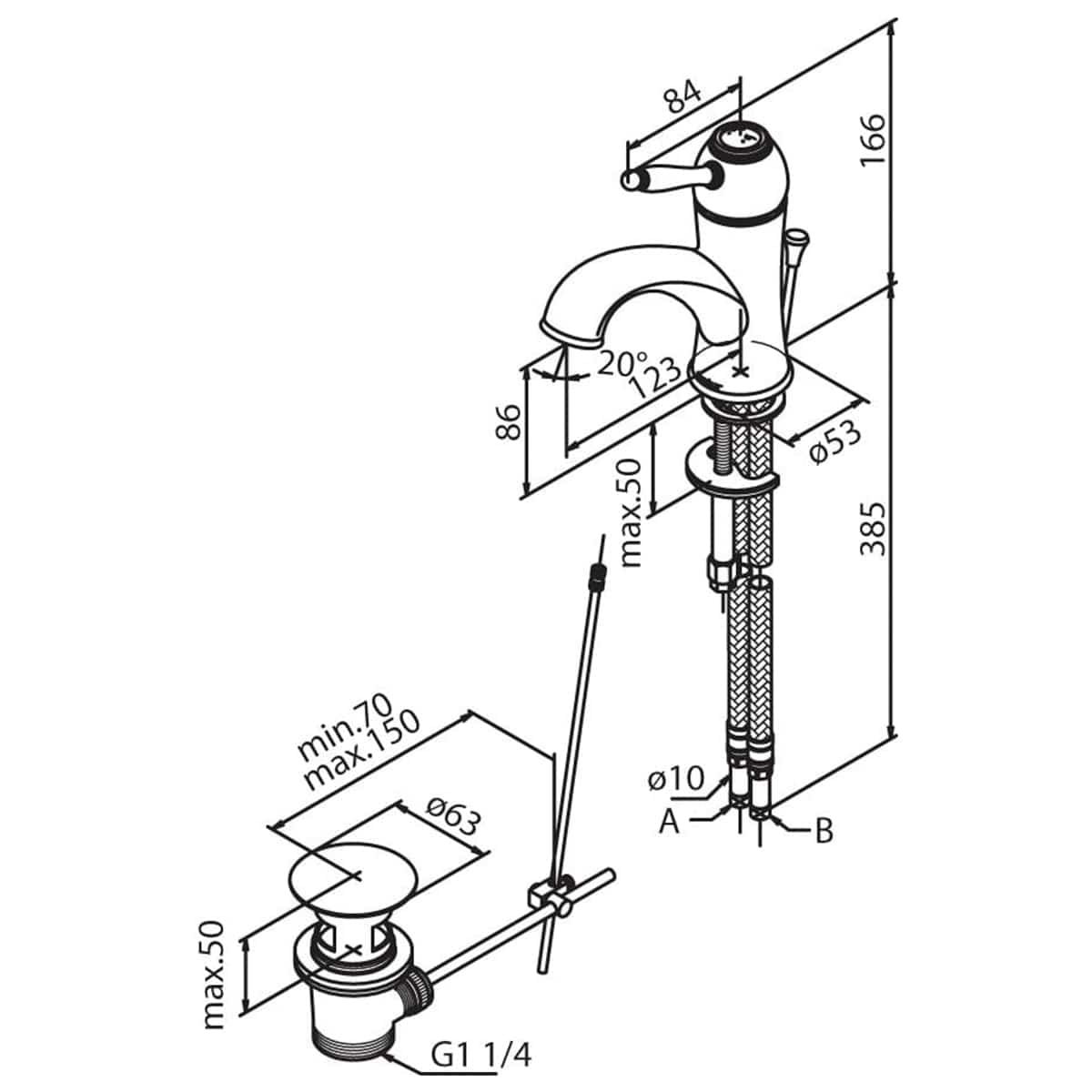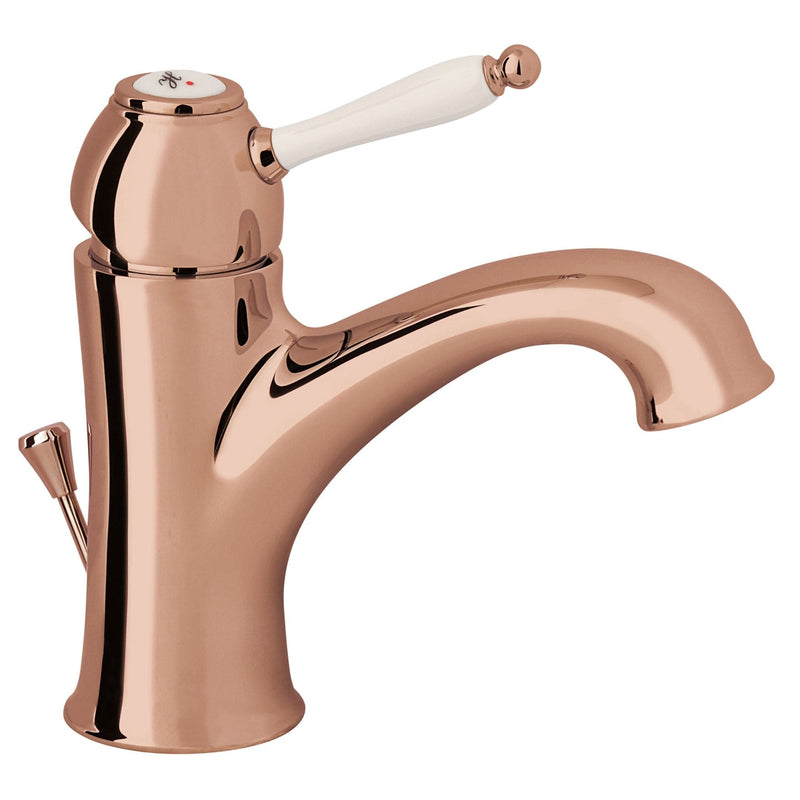 Nostalgisk servantkran med oppløftventil. Ettgreps kran med eco-save og skoldesperre.