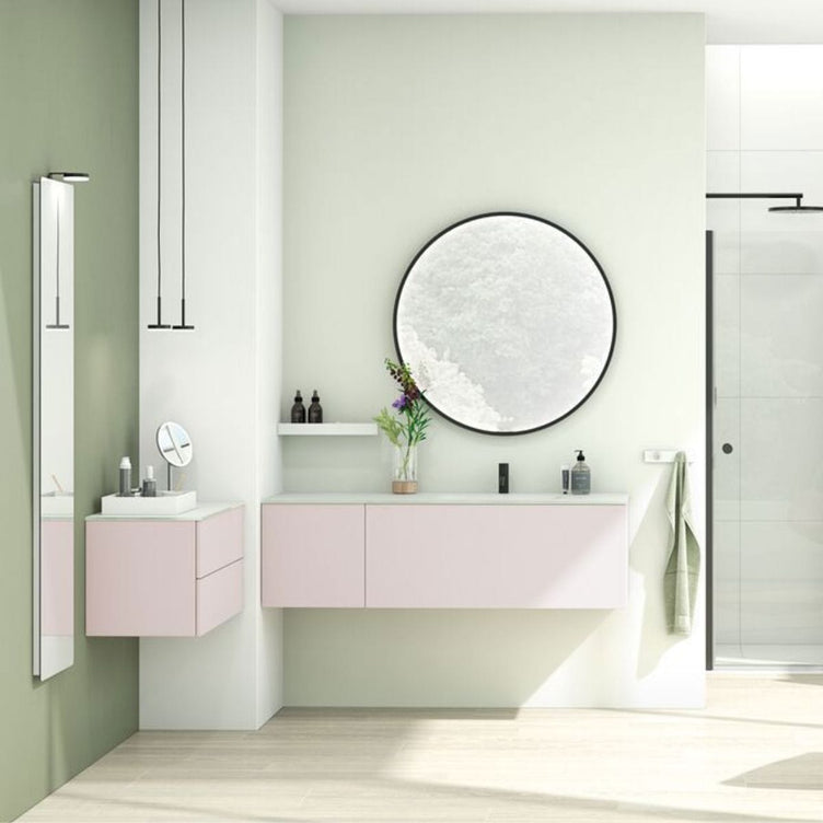 Minimalistisk og elegant design med en matt, fløyelsmyk overflate i et ultratynt, lett materiale. Benkeplaten kan skreddersys så den passer perfekt inn på ditt bad.