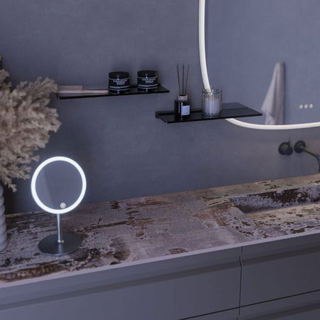 Handy Sminkespeil er et rundt speil som står på sokkel. Det betyr at du kan ha det ved sminkebordet, på soverommet eller på badet - avhengig av hvor du trenger det mest. Det runde speilet har innebygd LED-lys og lysstyring, og det forstørrer 5 ganger.