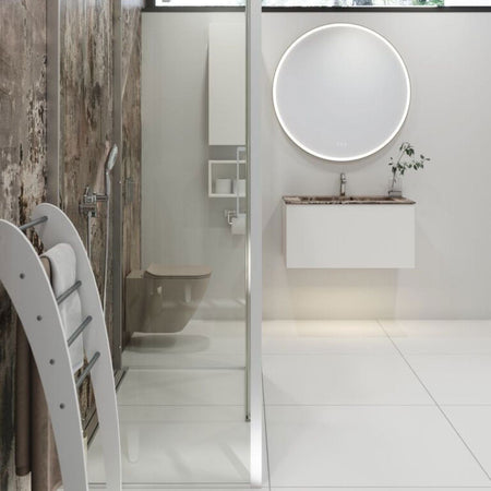 Med den innebygde lysstyringen kan du enkelt justere lysstyrken etter behov, slik at du kan skape den perfekte stemningen – fra sterkt lys til sminke til mykt lys for avslapning. Hoop-speilet leveres som standard med en svart ramme, men du kan velge å få ytterrammen lakkert i en spesialfarge som passer til innredningen din.
