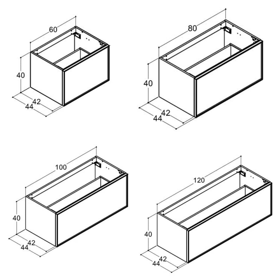 B60-120xh40xd44cm, uten utskjæring for avløp