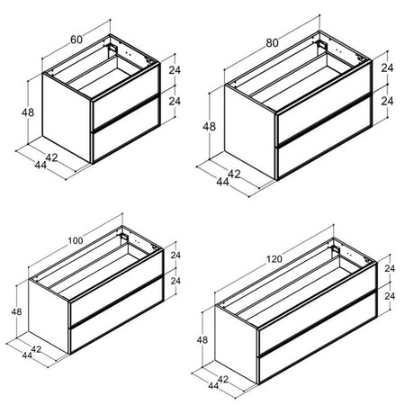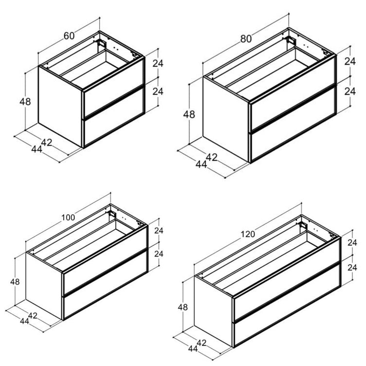 B60-120xh48xd44cm, uten utskjæring for avløp