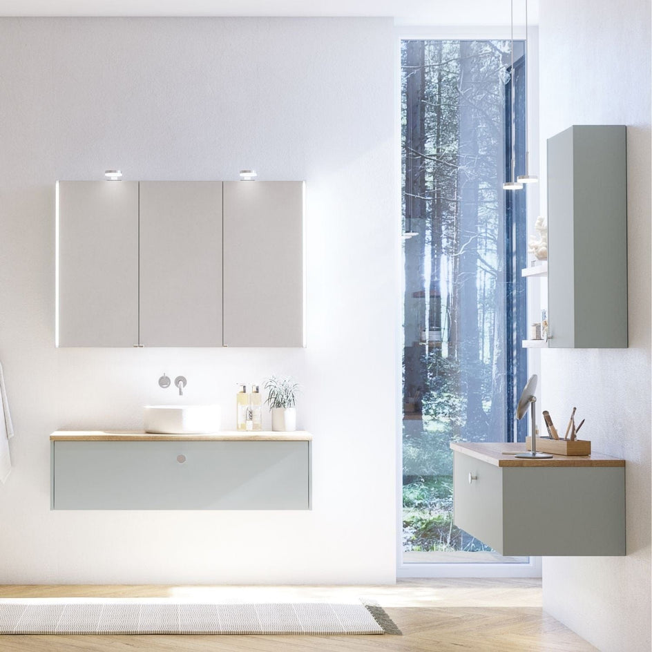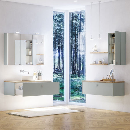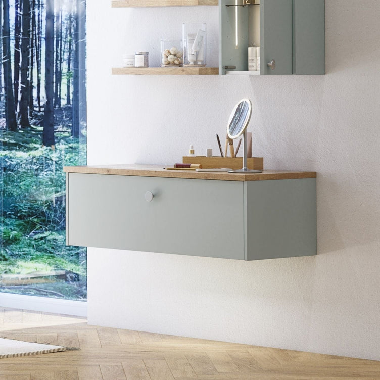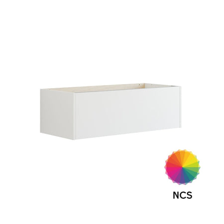 Skapet har én romslig skuff uten slukutskjæring, noe som gir optimal oppbevaringsplass for baderomsartiklene dine. Bruk det med en benkeplate for et minimalistisk uttrykk, eller kombiner det med et servantskap og en spesialtilpasset servant på toppen.