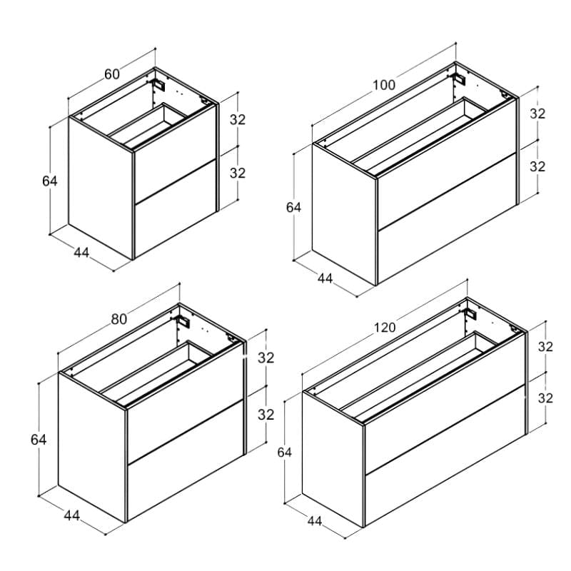 B60-120xh64xd44cm, uten utskjæring for avløp
