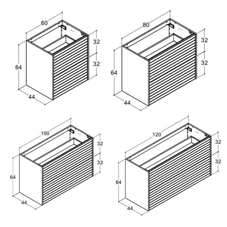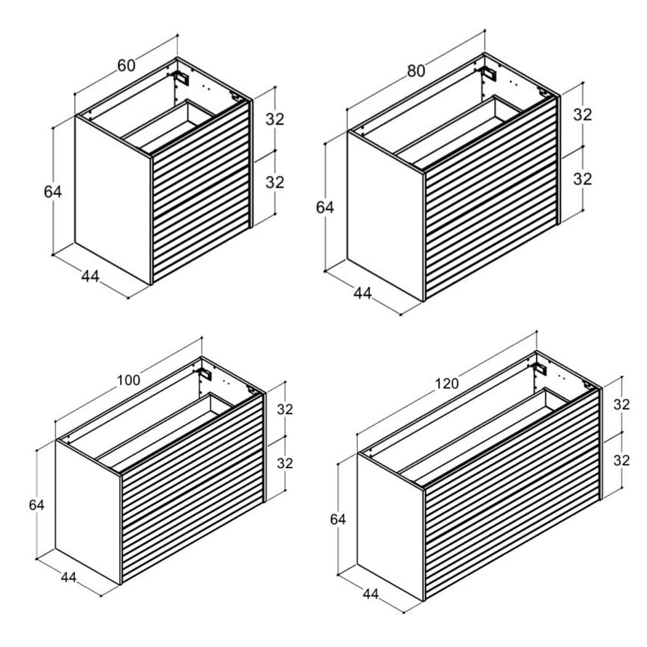 B60-120xh64xd44cm, uten utskjæring for avløp