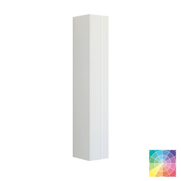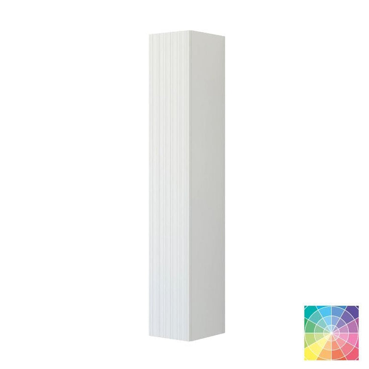 Skap et elegant uttrykk med et høyskap i 30 cm bredde og riflet front. Dette smale høyskapet tilbyr funksjonell oppbevaring med én trehylle og fem glasshyller, noe som gir fleksibilitet til å organisere alle baderomsartiklene dine.