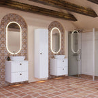 I tillegg til at servantskapene er vakre å se på, er de også praktiske med to romslige skuffer til oppbevaring av nødvendigheter. Tilfør badet tidløs eleganse med dette servantskap, og nyt det unike uttrykket det gir rommet.