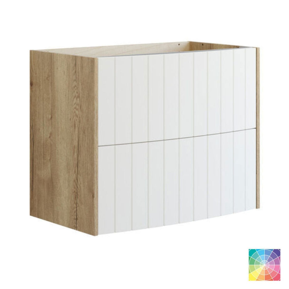 Dette servantskap med 2 skuffer har en sjarmerende retrodesign. De buede frontene har vakre riller som gir et karakteristisk uttrykk. Servantskapene fås i flere ulike dekor, slik at du kan velge den fargen som passer best til din personlige stil.