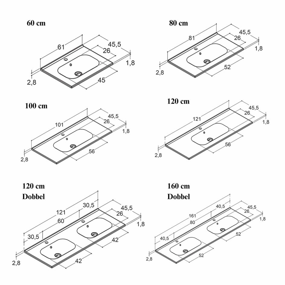 Produkt Id 7831452516551 Merke Dansani Art.nr. Farge Størrelse Kranhull DA-531906003 Hvit 60cm Ja DA-531906103 Hvit 60cm Nei DA-531908003 Hvit 80cm Ja DA-531908103 Hvit 80cm Nei DA-531910003 Hvit 100cm Ja DA-531910103 Hvit 100cm Nei DA-531912003 Hvit 120cm Ja DA-531912103 Hvit 120cm Nei DA-531922003 Hvit 120cm dobbel Ja DA-531922103 Hvit 120cm dobbel Nei DA-531926003 Hvit 160cm dobbel Ja DA-531926103 Hvit 160cm dobbel Nei Vis mer