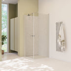 To rette dører - klassisk og veldig populært dusjhjørne med to svingdører som kan åpnes både utover og innover når du ikke bruker hjørnedusjen. Det gir god gulvplass på et lite bad og åpner rommet. God høyde på 200 cm gir en effektiv dusjavskjerming, spesielt ved takmontert dusjhode / takdusj. Komplett dusjhjørne.