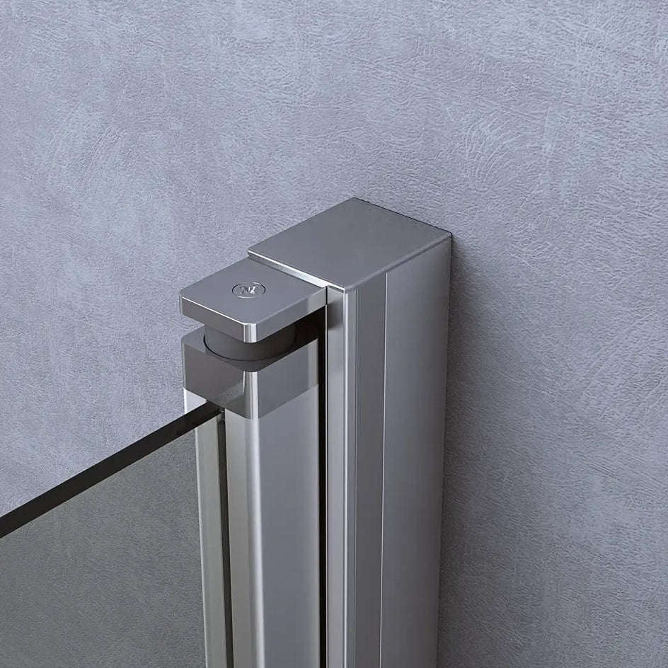 Modell A Svingdør - den store døren sikrer lett adgang og kan samtidig lukkes inn mot vegg slik at avskjermingen ikke tar opp plass i rommet. Med de slanke profilene og store enkle glassflatene kun avbrutt av et minimalistisk håndtak, er dette den mest diskrete dusjløsningen.