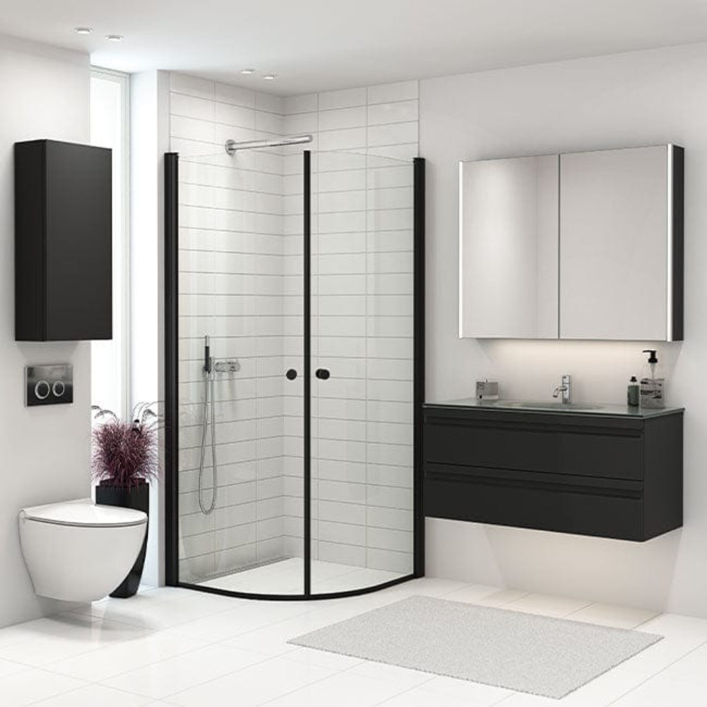To buede dører - enkel og stilig dusjløsning med to buede dører. Døråpning både utover og innover gir god plass i rommet når dusjhjørnet ikke er i bruk. God høyde på 200 cm gir en effektiv dusjavskjerming, spesielt ved takmontert dusjhode / takdusj. Pris er pr stykk, du må kjøpe 2 dusjdører for et komplett hjørne.