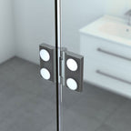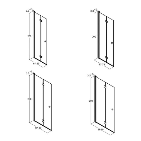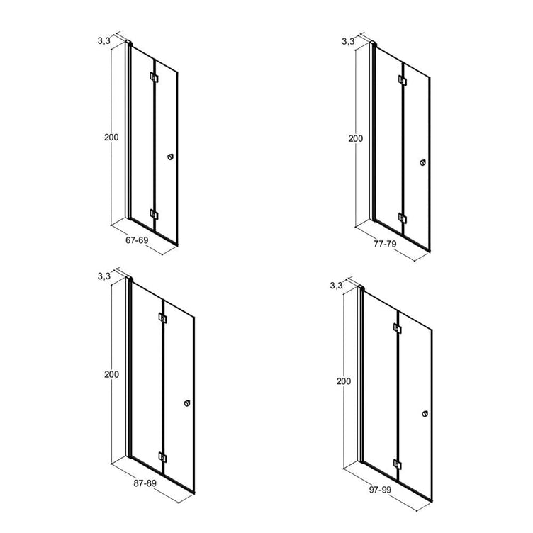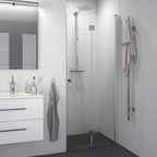 To foldedører - en smart løsning, hvor begge dusjdører kan foldes inn når du ikke benytter dusjhjørnet, så de opptar minst mulig plass i rommet. God høyde på 200 cm gir en effektiv dusjavskjerming, spesielt ved takmontert dusjhode / takdusj. Pris er pr stykk, du må kjøpe 2 dusjdører for et komplett hjørne.