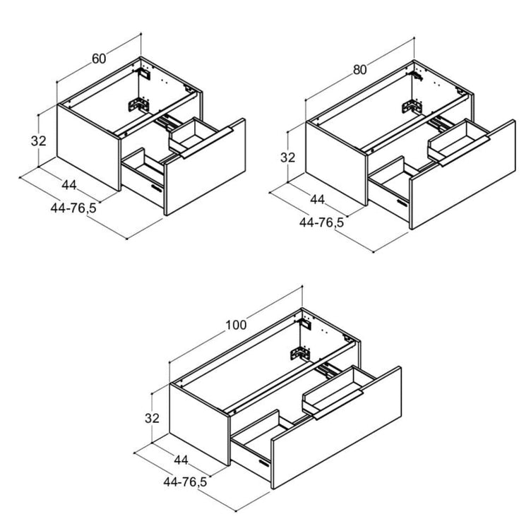 Dansani Mido+ Classic Glatt Servantskap 1 Skuff B60-100xH32xD44cm Hvit matt / 60cm Dansani Servantskap DA-N21-1010