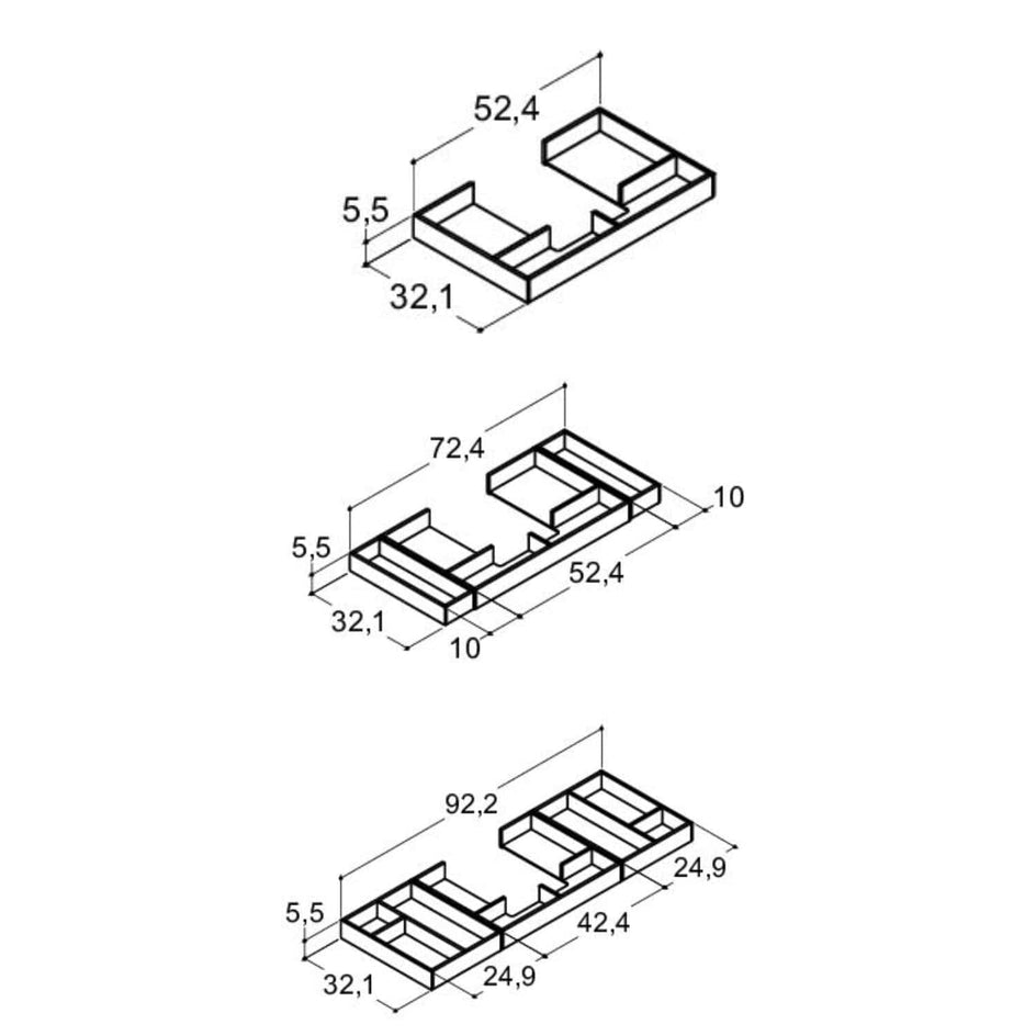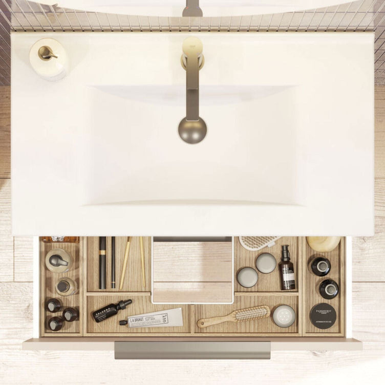 Med trebrett til den øverste skuffen kan du organisere bedre og holde orden i skuffene. Trebrettene er delt inn i ulike rom der du kan oppbevare bomullspinner, kremer, tannbørste osv. Skufffeinnredningen er både praktisk og ser flott ut i skuffen.