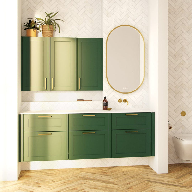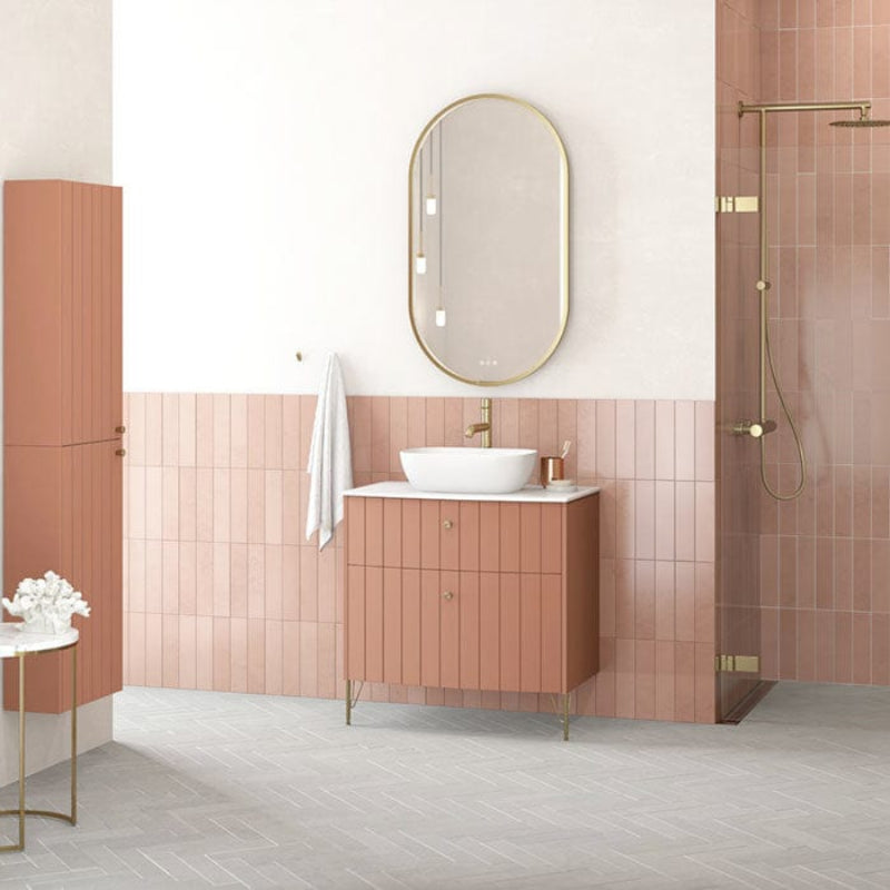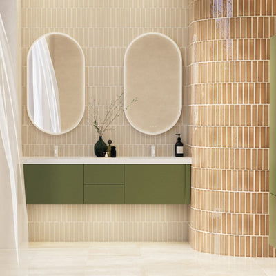 Under forhandlerlunsjen med Korsbakken i januar fikk vi se hvordan baderomstrendene for 2025 utvikler seg. Fellesnevneren? Rolige farger, myke former og funksjonelle løsninger - akkurat som dette speilet.