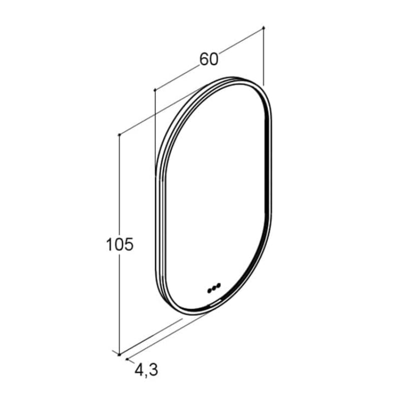 • Dansani Moon Oval rammespeil B60xH105 cm - speil med ramme, LED-lys og touchstyring