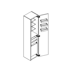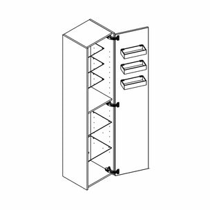 - Versjon C: består av 1 trehylle, 3 smale glasshyller, 3 trebrett til dør, 2 trebrett og 1 skittentøyskurv