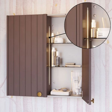 Den gjennomtenkte oppbevaringsløsningen gjør det mulig å organisere alt fra kosmetikk til klesvask, samtidig som den riflede fronten gir et sofistikert uttrykk. Med dette høyskap får du mye for pengene.