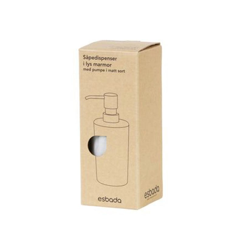 Elegant og tidløst naturprodukt fra Esbada. Marmorserien finnes i lys og mørk variant. Variasjon i farge og mønster vil forekomme. Ekte marmor er et tungt og solid materiale som gjør at produktene står stødig. Matt sort pumpe medfølger. Ny og miljøvennlig forpakning.