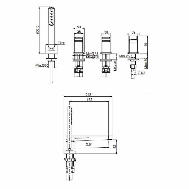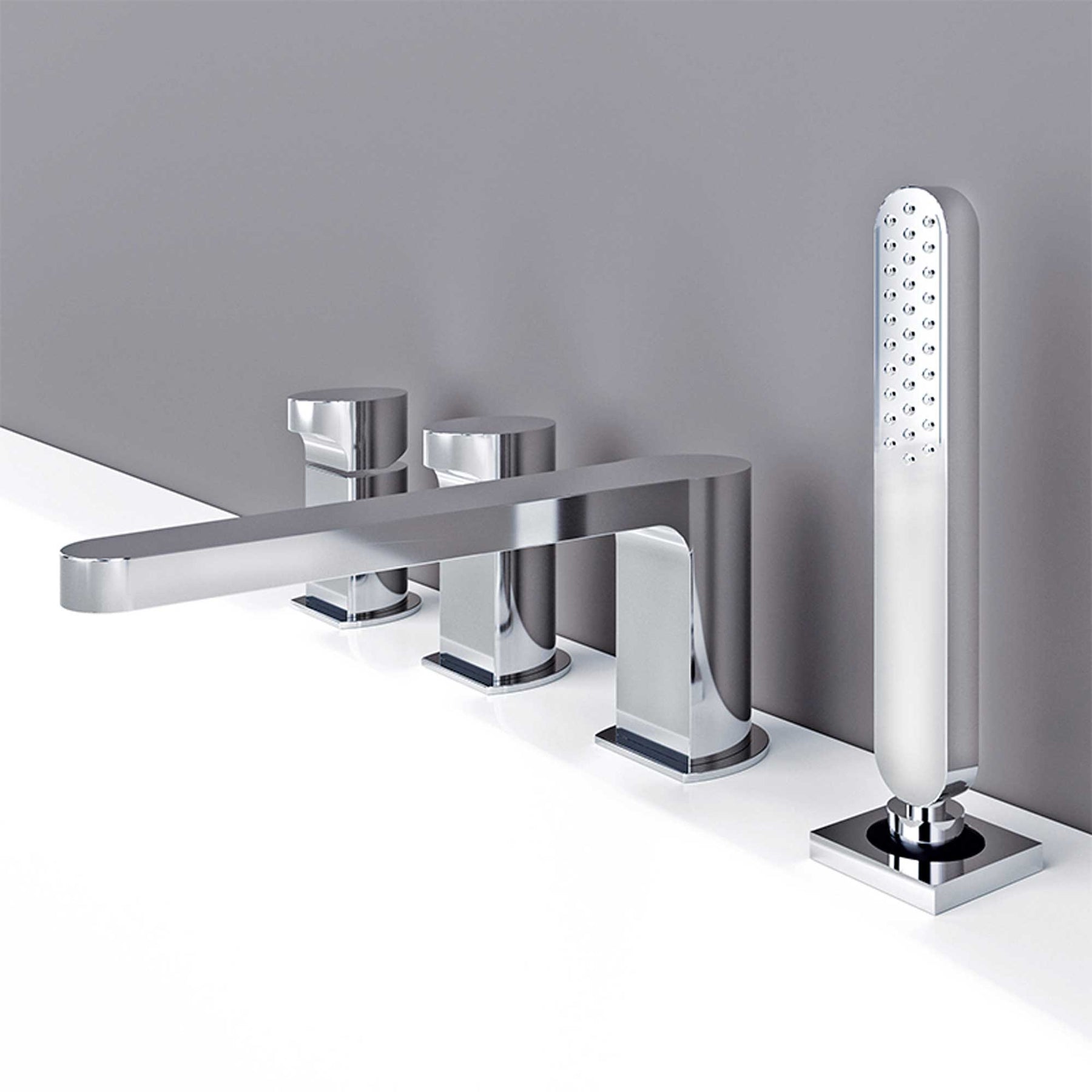 Newform Ergo-Q badekarkran 4-hull for montering på badekar. Karkantbatteri i svart matt eller krom utførelse.