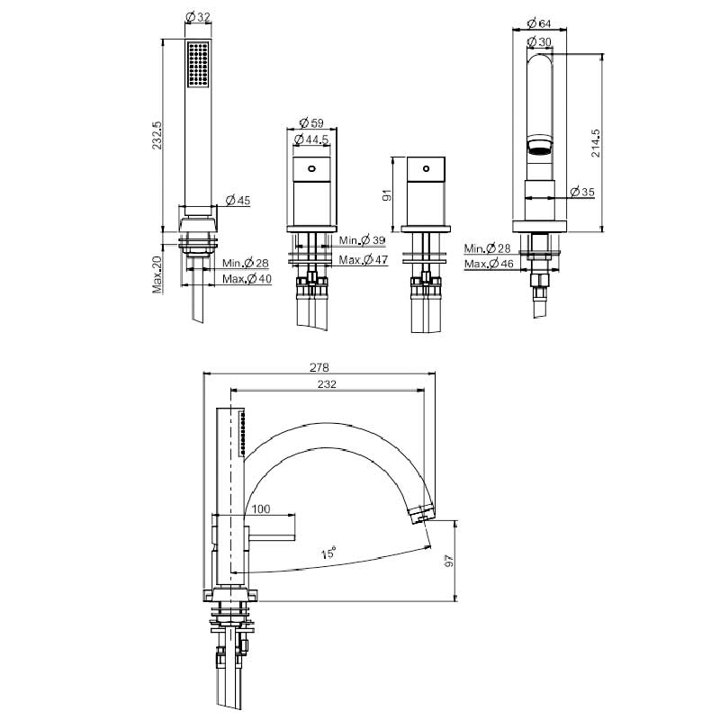 Passer til alle typer badekar med karkant som er tilstrekkelig bred. Dette kan også monteres i boks/hylle ved siden av badekaret.