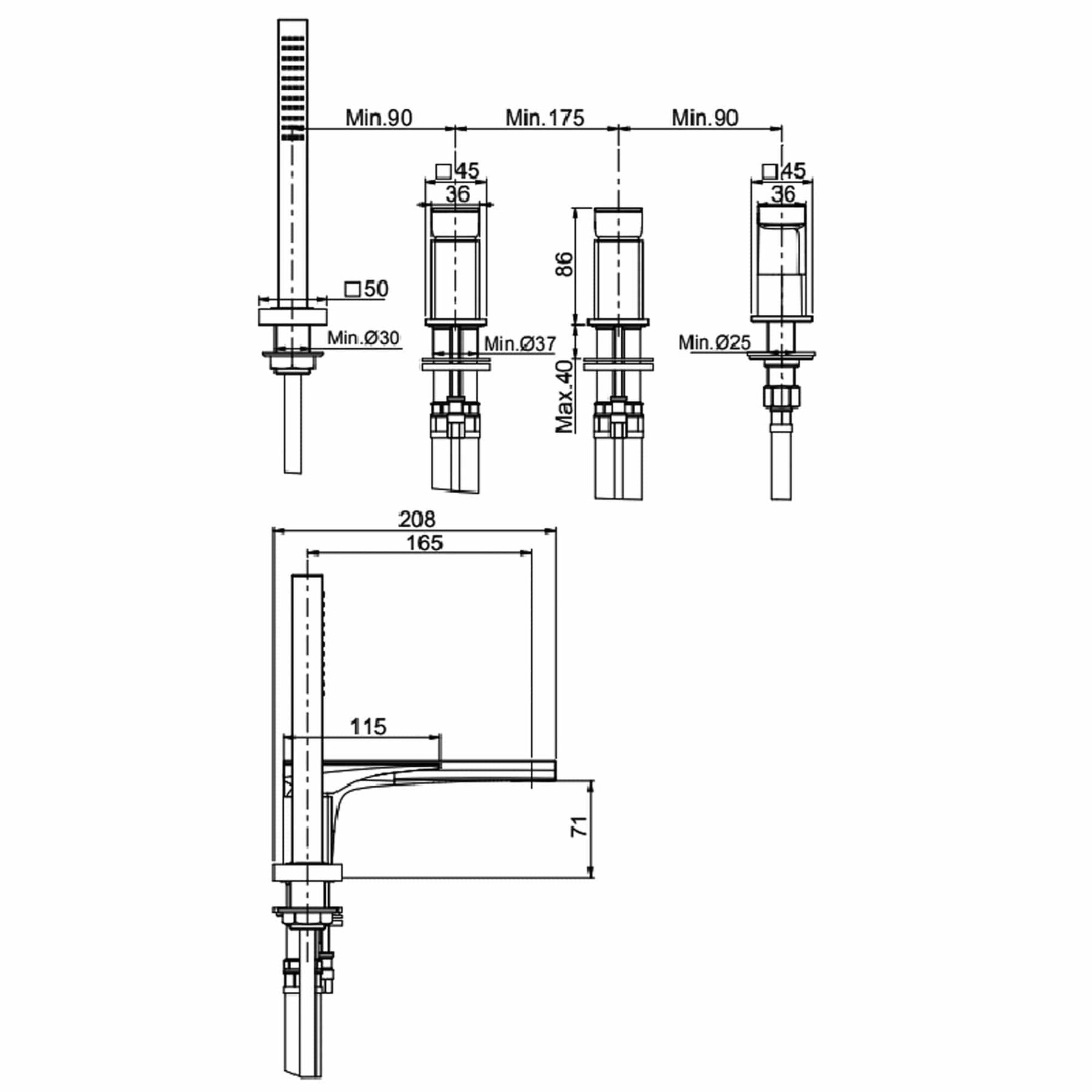 • Newform Ergo-Q badekarkran 4-hull for montering på badekar. Karkantbatteri i svart matt eller krom utførelse.