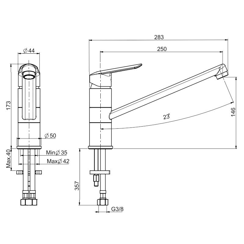 En praktisk og funksjonell kjøkkenkran med svingbar tut. Passer perfekt til kjøkkenvasken og som benkemontert kran til vaskekar og utslagsvasker.