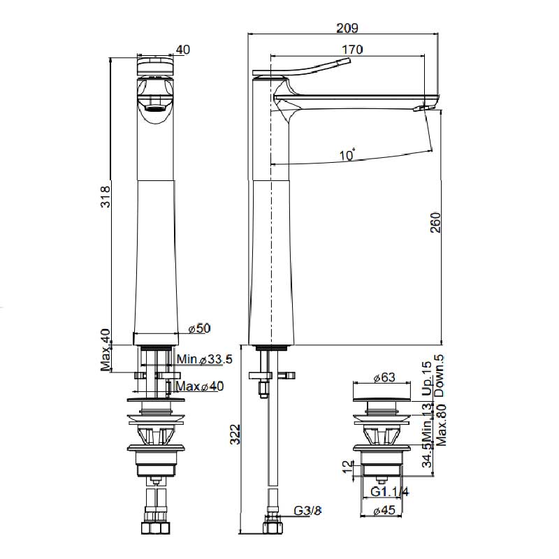 - Farge: Krom/Svart matt/Hvit matt/Børstet champagnegull