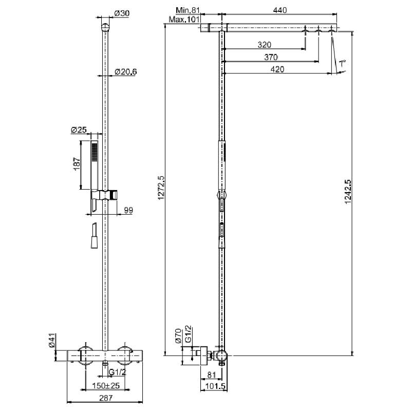 Høydejusterbar stang som er kappbar. Utstyrt med tre dyser med justerbare lufttrykkmekanismer som sikrer redusert vannforbruk og god vannspredning. De rene linjene, runde fasongen og luften fra dysene danner på organisk vis et godt ergonomisk vanntrykk og gir en optimal dusjopplevelse. Produktet er på lager i klassiske krom og sort matt. Men kan også bestilles i rekke farger.