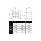 Ø100mm Ø125mm Ytelse Viftehastighet, maks 2300 r/min 2400 r/min Luftmengde frittblåsende 84 m³/h 174 m³/h Maks trykkfall 41 Pa Strøm Merkespenning 230 V Frekvens 50 Hz Energiforbruk 14.0 W 16.0 W Strømforbruk 0.085 A 0.1 A IP-klasse IP34 Lyd Lydnivå dB(A) 38 dB 39 dB Installasjon Omgivelsestemperatur 1 - 40 °C Mål og vekt Bredde (mm) 144 mm 168 mm Høyde (mm) 144 mm 168 mm Vekt 0.47 kg 0.6 kg Kanaltilkobling (Ø) 100 mm 125 mm -