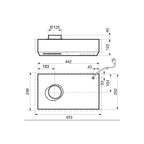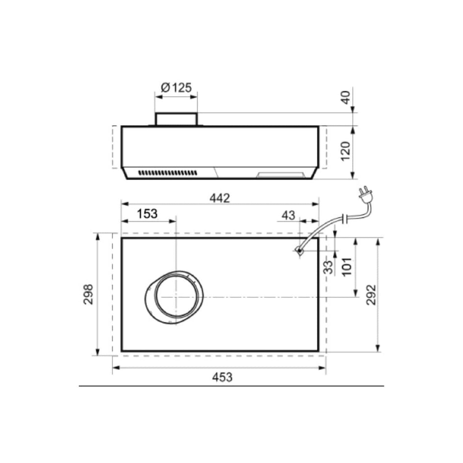 Strøm Merkespenning 230 V Frekvens 50 Hz Materiale og farge Farge Hvit Lyd Lydnivå dB(A) 51 - 63 dB Belysning Belysning LED 8W E27 Ventilasjon Osoppfang (%) v/m3/h 75% v/195 m3/h Mål og vekt Vekt 4,7 kg TKanaltilkobling (Ø) 125 mm Utsparingsmål (bxh) 453x298 -